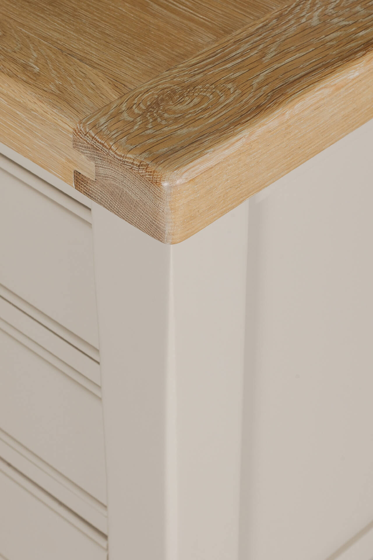This versatile piece features three spacious drawers with sleek metal handles, providing ample storage for your nighttime essentials. The table's painted finish and elegant oak veneer top add a touch of sophistication to any decor.