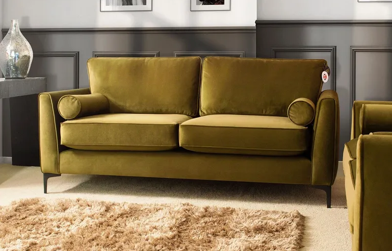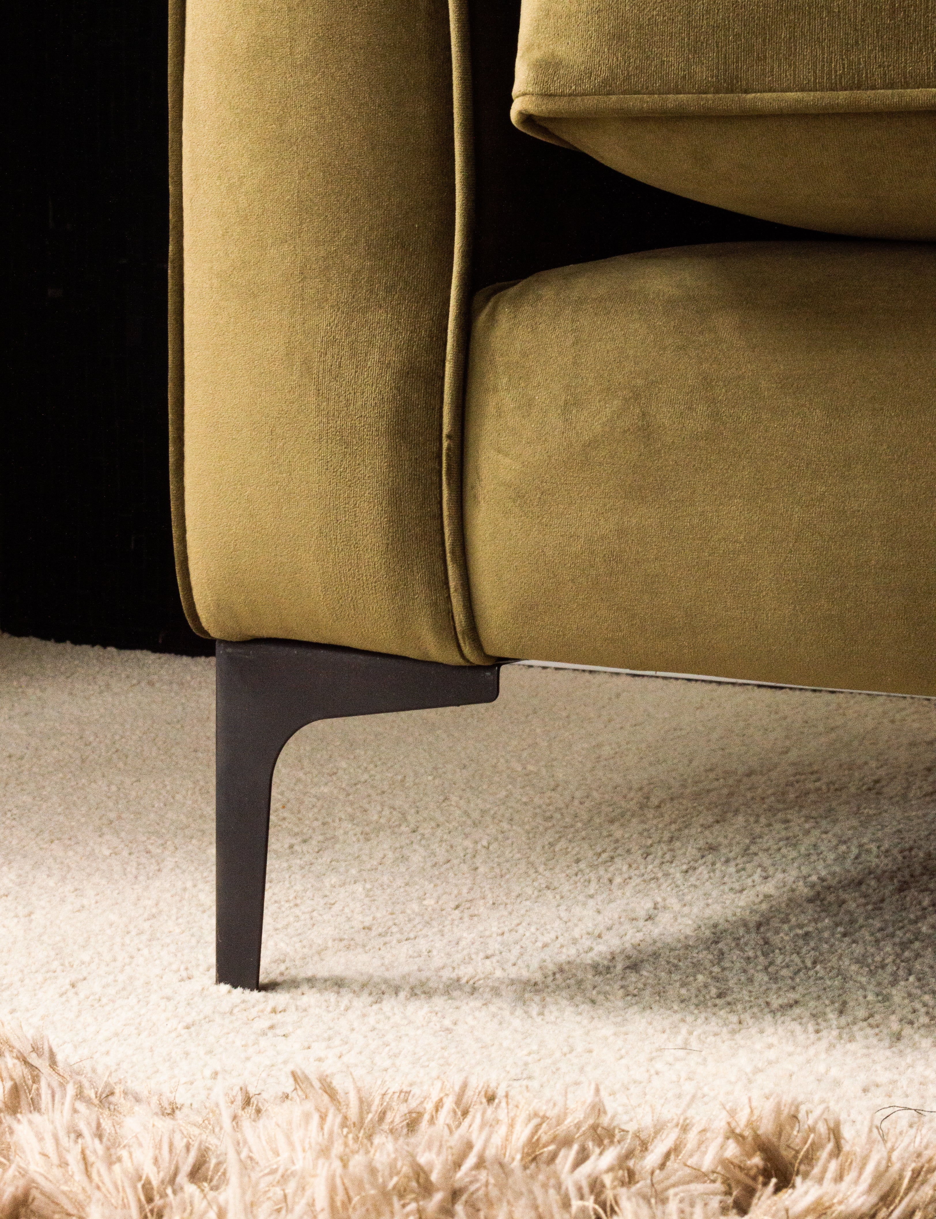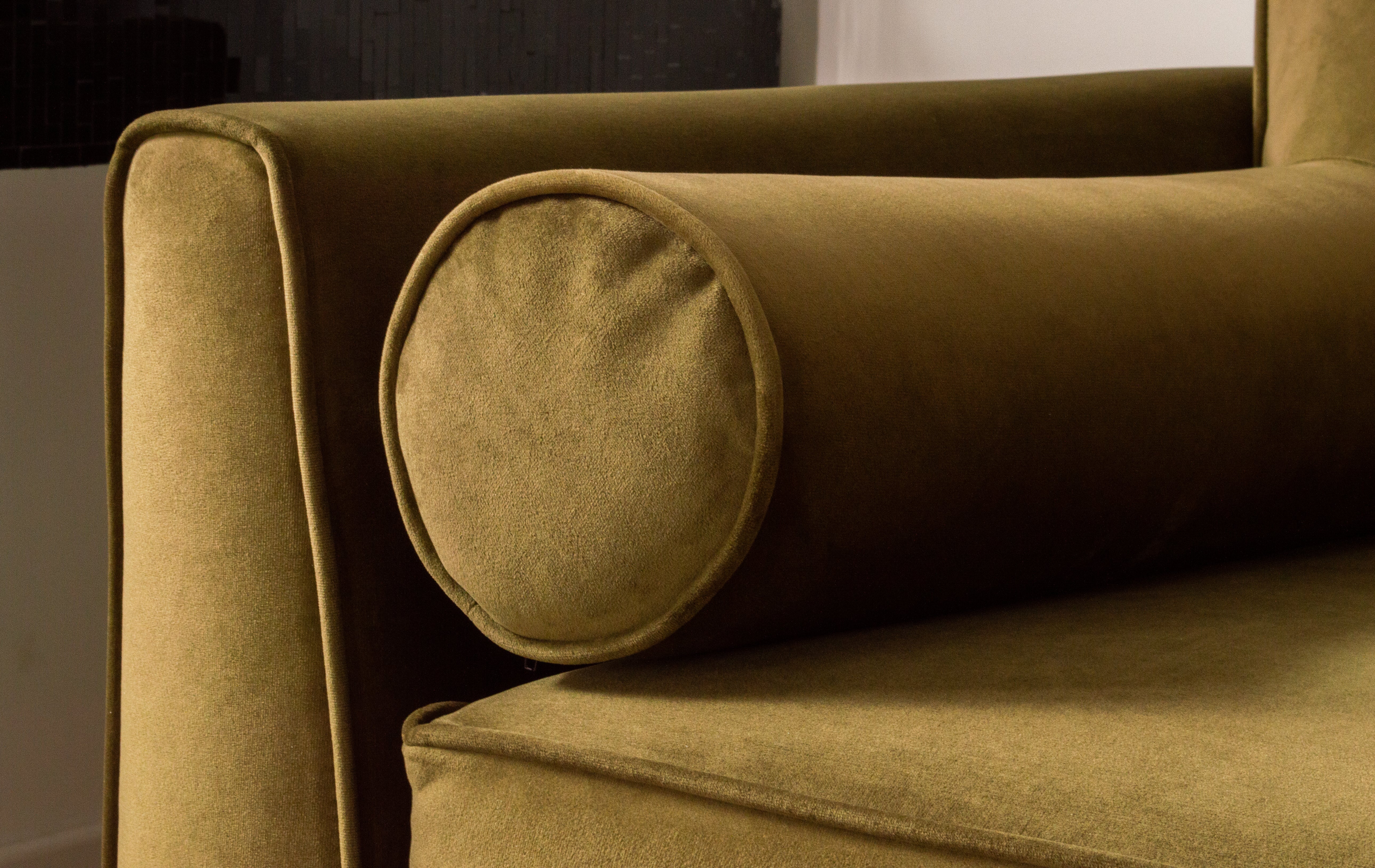 This sofa comes in a variety of colours, fabrics, and sizes. The accompanying image features a 3 seater sofa, but contact us for more information and to specify your desired fabric for ordering. The fabric shown in the pictures is Plush Khaki.