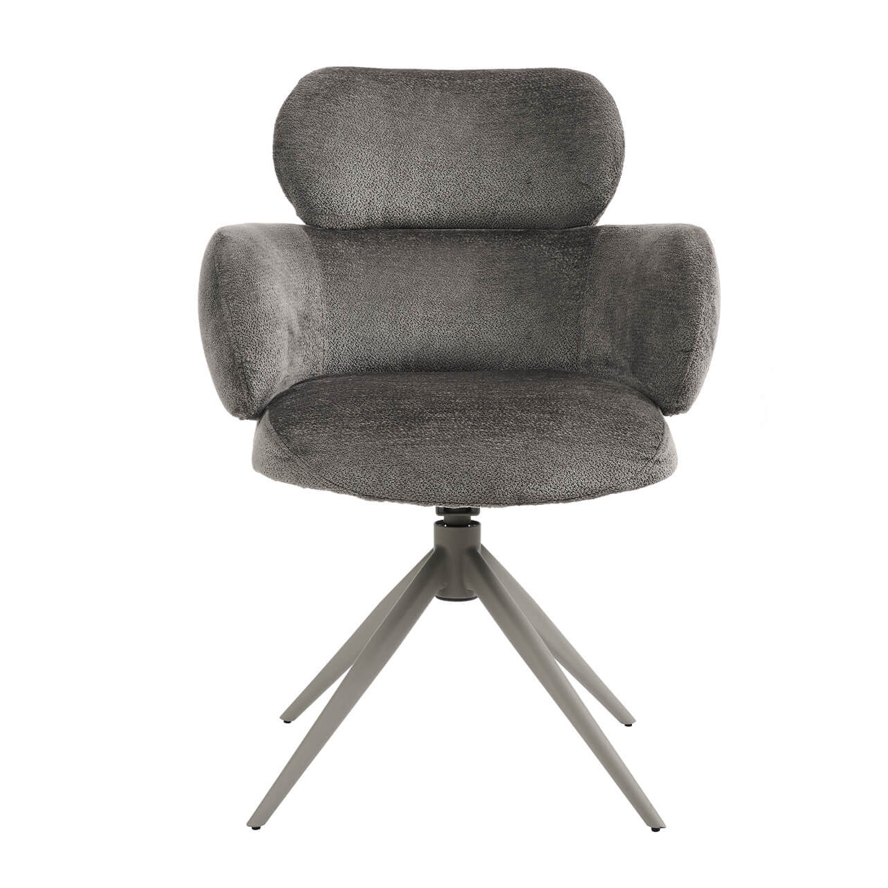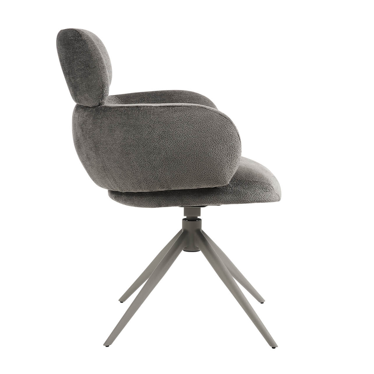 Apollo Dining Chair in Mocha - featuring a soft fabric, a padded seat for comfort, sturdy powder-coated metal legs, and a smooth 360° swivel, it's perfect for modern living.