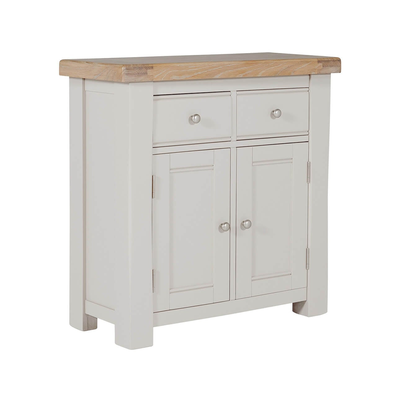 A versatile addition to any room, this compact sideboard features a stylish painted finish with an elegant oak veneer top. It offers practical storage with two drawers and two doors, plus internal shelving for organised space. The sleek metal handles and balanced design make it both functional and fashionable.