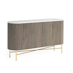 This collection showcases a stunning mixed-material design. Hand-finished fluted mango is luxuriously complemented by solid real marble.