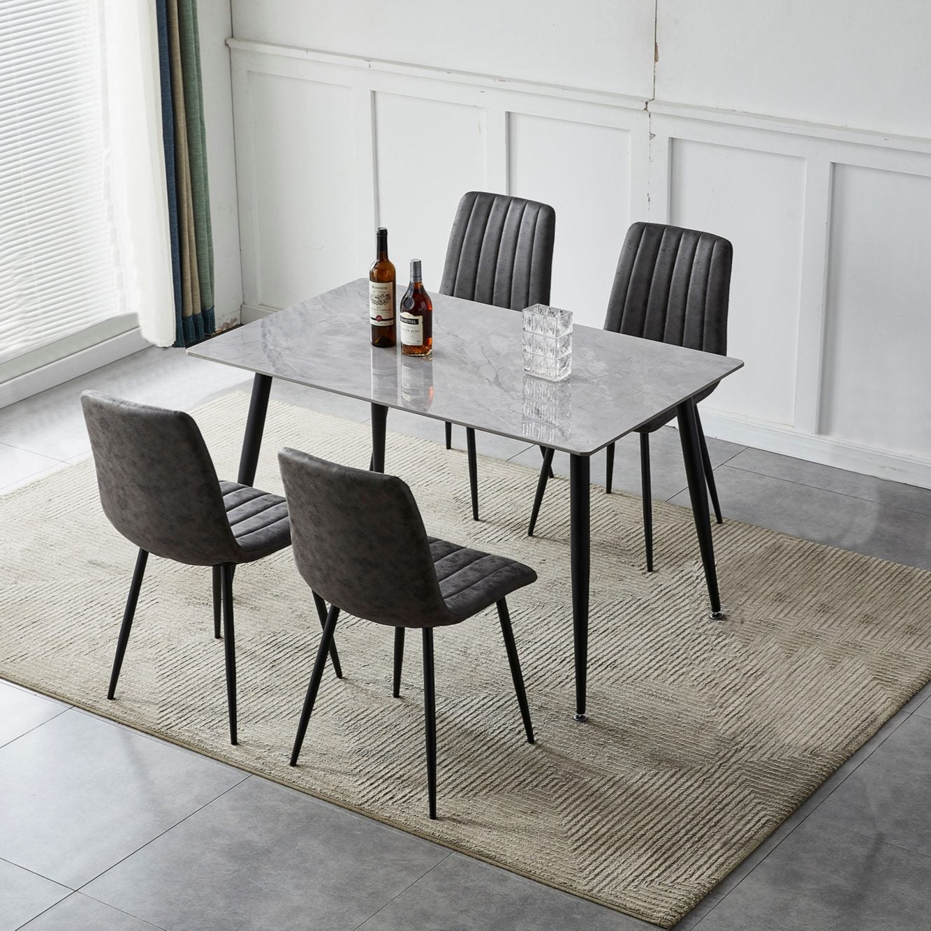 AvailableExpertly crafted for style and durability, the Roma Dining Set boasts a sleek marble effect table top and sturdy metal legs. Enjoy the elegance and strength of this 130cm table and 4 Nappoli dining chairs for all your dining needs.