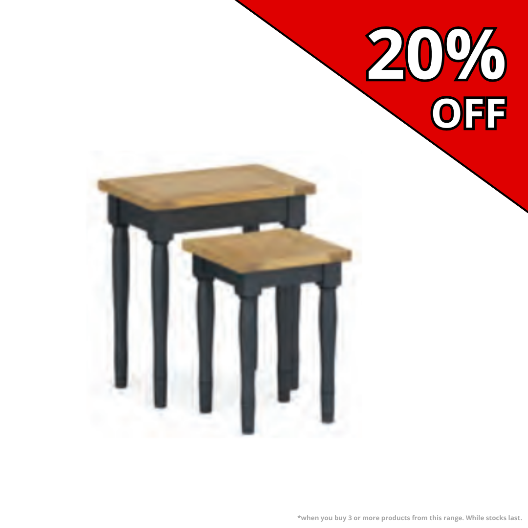 This stunning collection is painted with oak tops. It is available in a variety of colours: Navy, Ivory, Charcoal.
