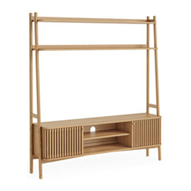 Straight slatted front contrasted with gentle curved edges. The slatted feature on the doors gives the design a lightness, a hint of texture and a distinguishing finish that will stand out in your living space. Beautifully simply gold handles bring the range to life while keeping the frame minimalist and streamlined.