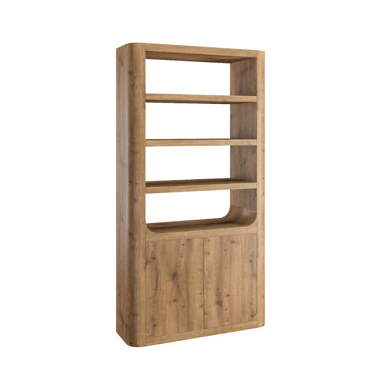 Massimo Tall Cabinet in Cashew combines bold rustic character with modern functionality. Featuring a distinctive cracked oak grain finish and solid wooden legs, it offers a sturdy presence with timeless appeal. The cabinet doors operate with a sleek push-to-open mechanism, while the fixed internal shelves provide stable and practical storage. A striking and functional addition to any living or dining space.