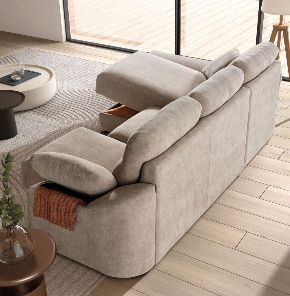 This sofa has sliding seats that pull out to make a deeper seat.