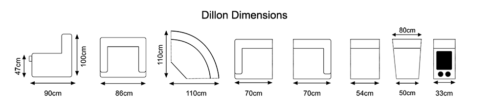 The corner groups are available as left-hand-facing or right-hand-facing. The Dillon armchair is also available with a swivel option.