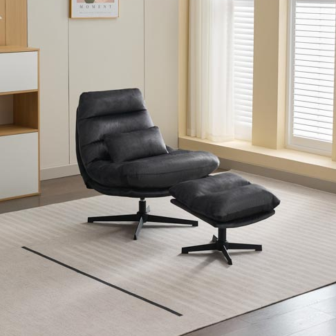 Clearance - Turner Swivel Chair & Footstool - Dark Grey