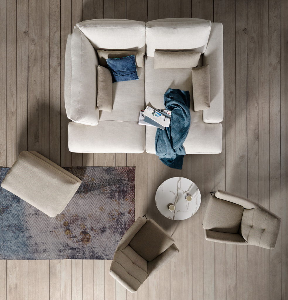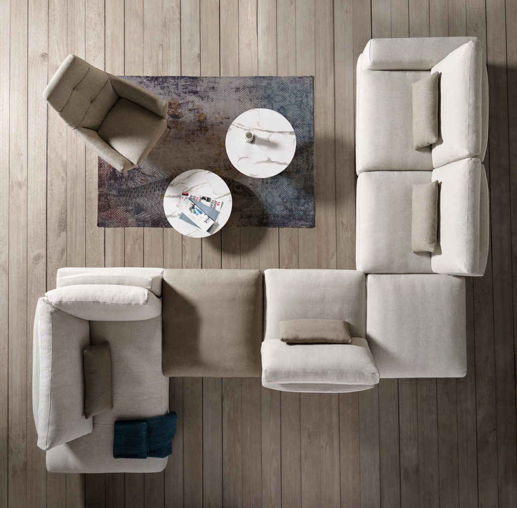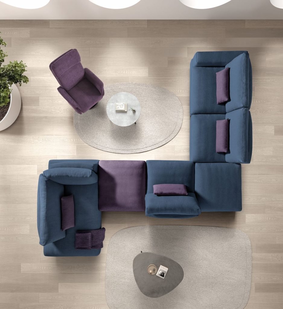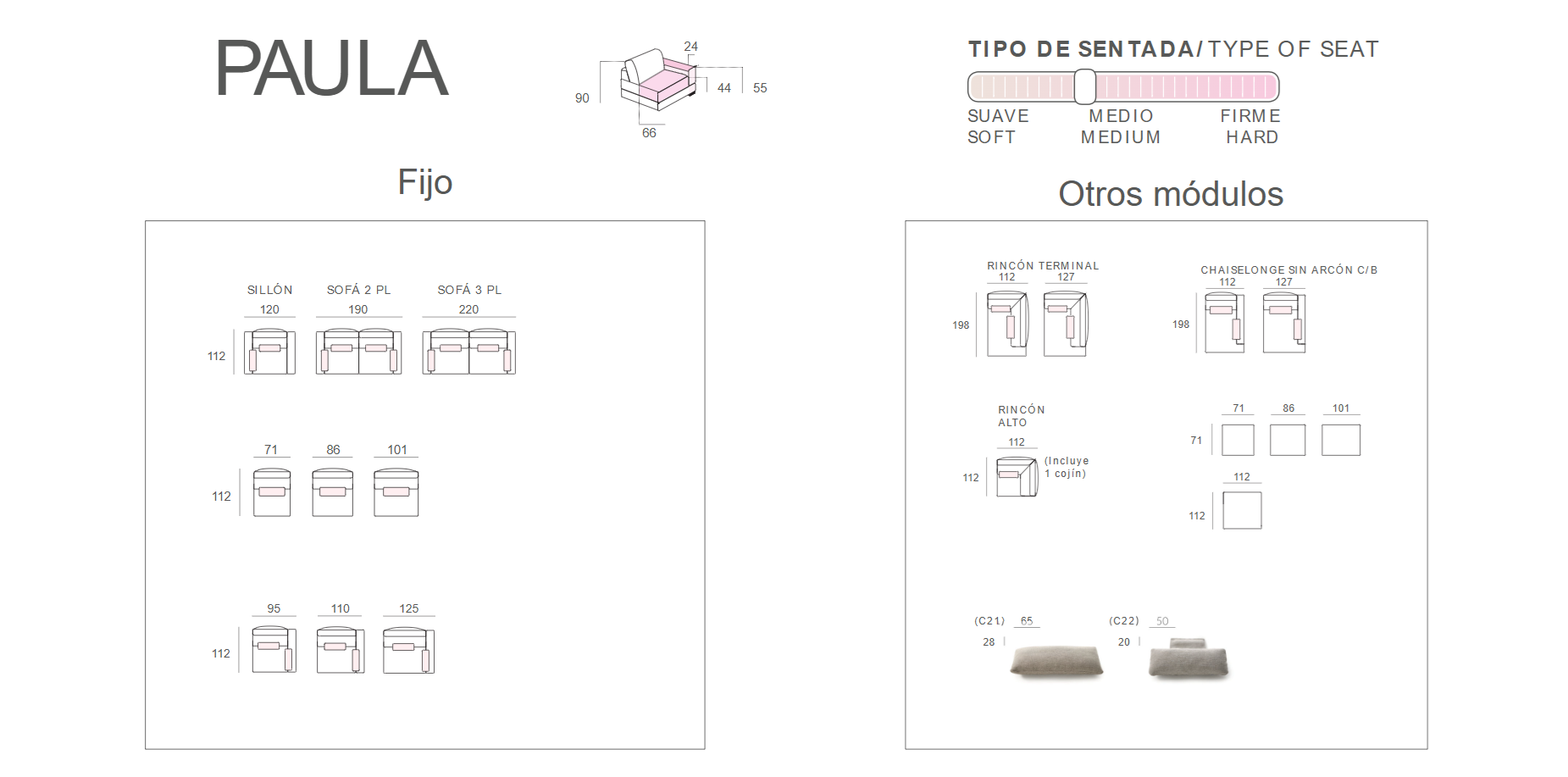Paula is a modular sofa with extreme versatility that allows creating different types of modulation with the same elements. Also highlight the softness of the seat and backrest, for unmatched visual comfort.