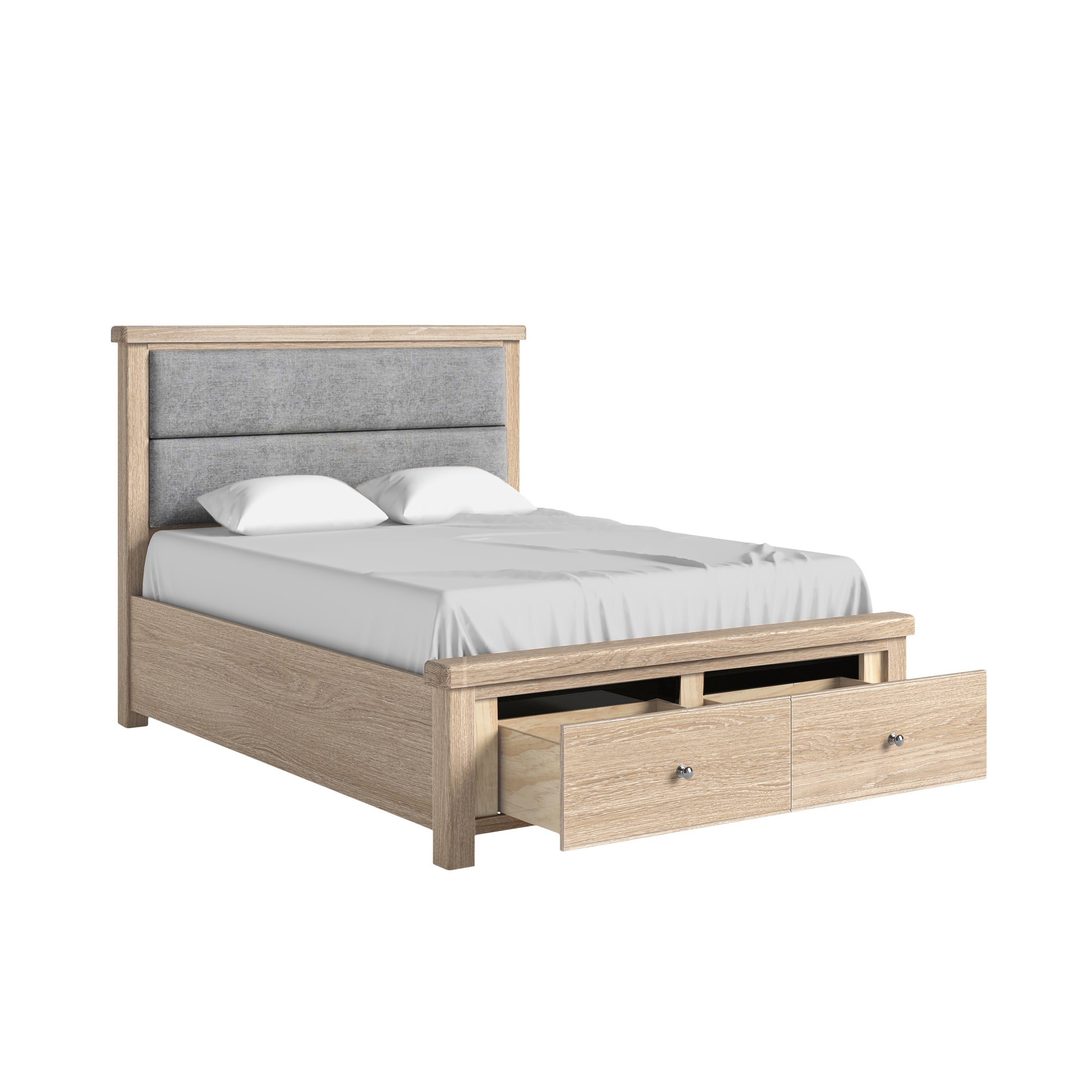 Normandy White Wash Bed Frame - Grey Headboard - 5'