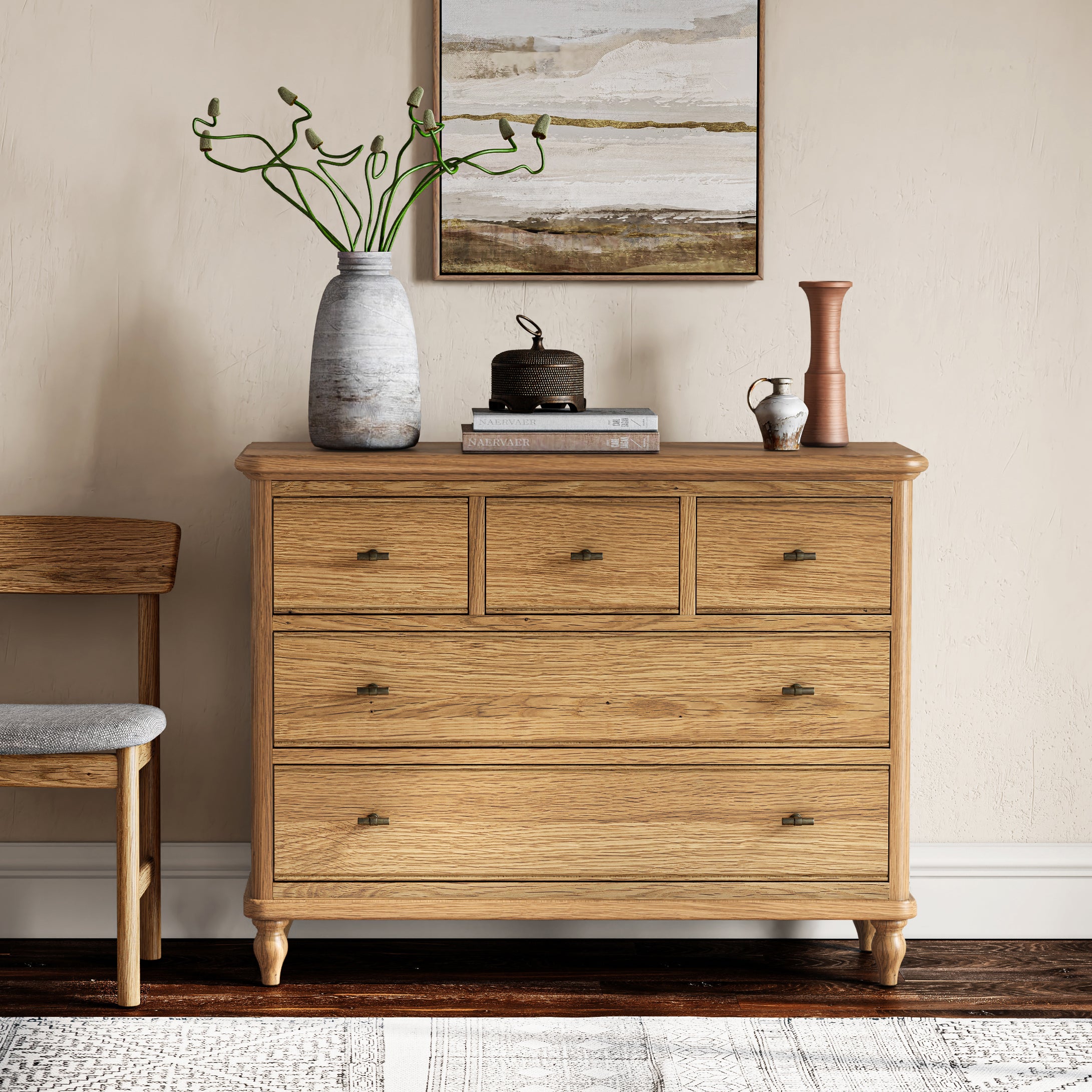 AvailableCrafted from a blend of solid oak and oak veneers, this extensive furniture collection brings warmth, character, and timeless style to living, dining, and bedroom spaces. Finished in a warm wax coating, each piece features a softly burnished sheen that enhances the natural grain and beauty of the wood.